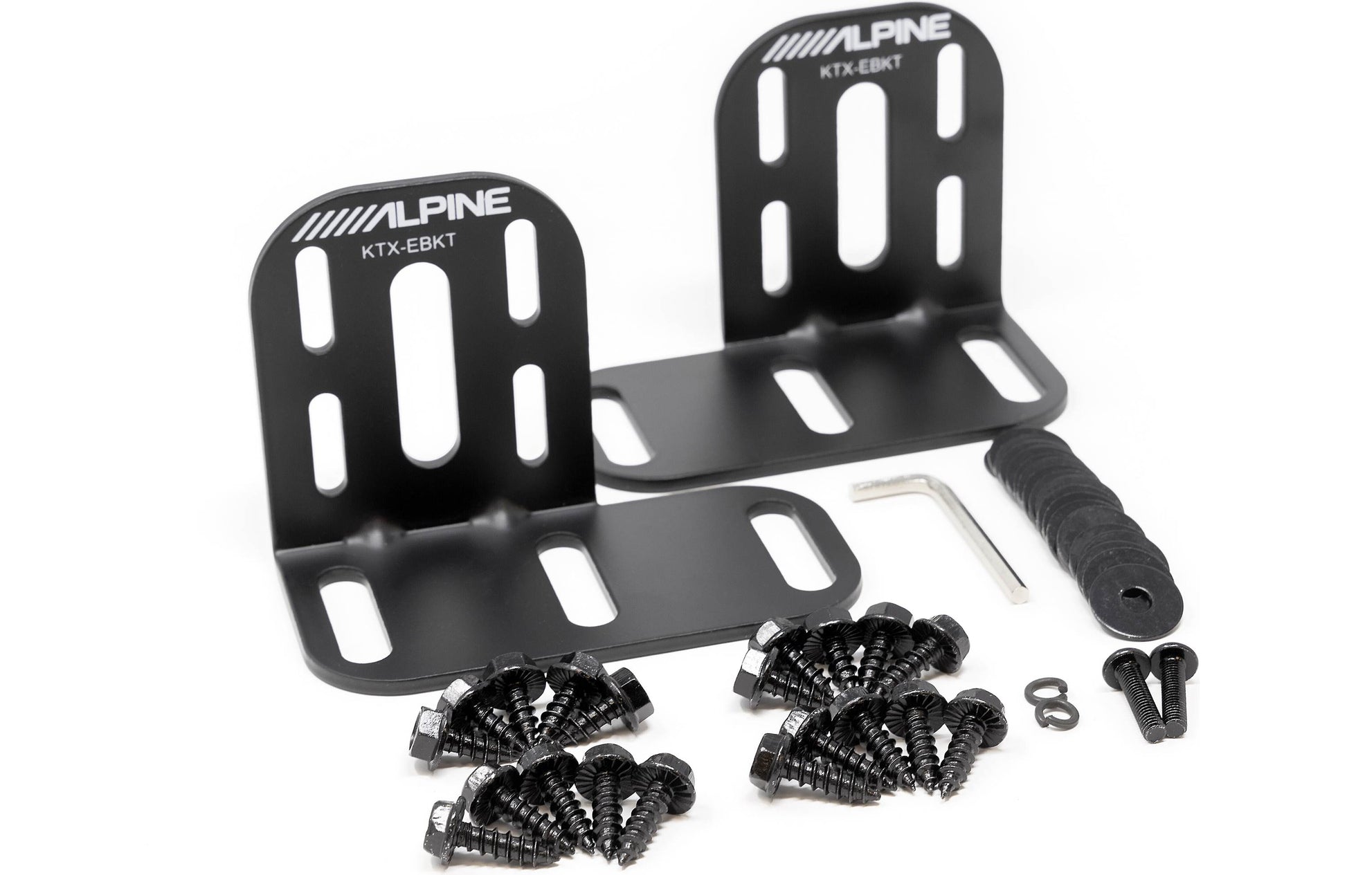 Overview:The Alpine KTX-EBKT Universal Mounting Bracket lets you firmly secure select Alpine and non-Alpine subwoofer enclosures (sold separately) to your vehicle floor or trunk. The KTX-EBKT includes 2 heavy-duty, powder-coated steel brackets along with mounting hardware for directly attaching the brackets to select Alpine enclosures without the need for drilling. Additional hardware is provided for installation on other Alpine and non-Alpine enclosures (drilling required).