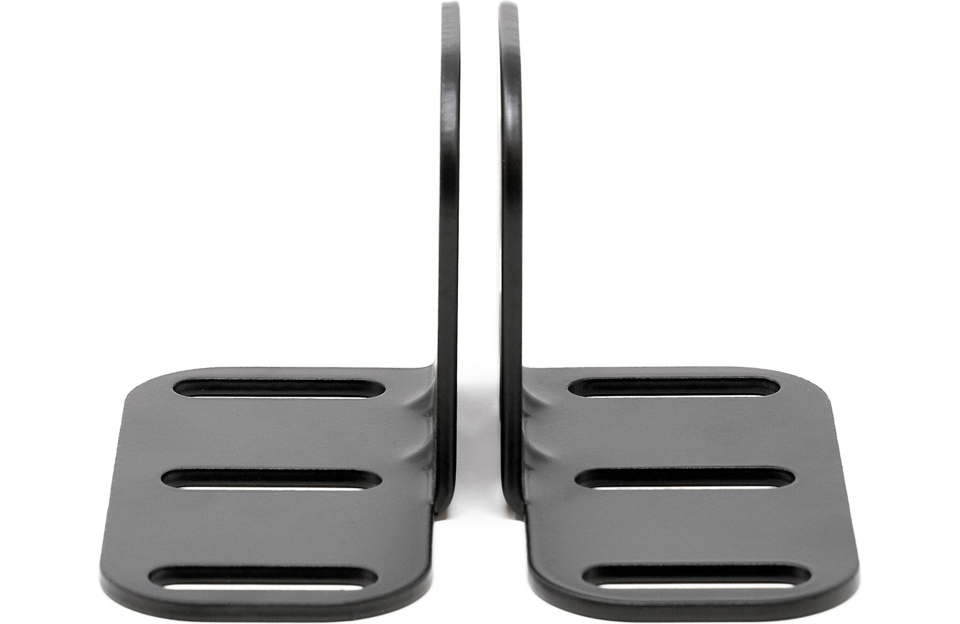 A sliding sub box can be a nuisance, and in an accident, a danger. Don't take chances — Alpine's KTX-EBKT mounting brackets will hold down virtually any sub box. These black powder-coated 7 mm steel brackets will work with any enclosure with some drilling. With select AlpineHalo,R-Series, andPrismaLinkenclosures you won't even need to drill holes in the box. Warranty: 1 year.