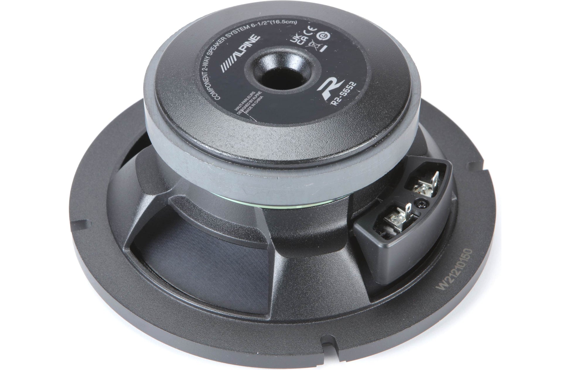 Alpine optimizes their R2-S652 6-1/2" 2-way component speaker system for near-perfect sound from premium sources. The woofer's combination of a highly rigid aluminum frame and a lightweight glass-fiber reinforced woofer cone helps minimize distortion. The high-amplitude multi-roll surround maximizes impact while maintaining linearity, so you'll get punch with minimal distortion. And speaking of a little more punch, the woofer's ferrite magnet and large motor structure will pump up the mid-bass in your music.