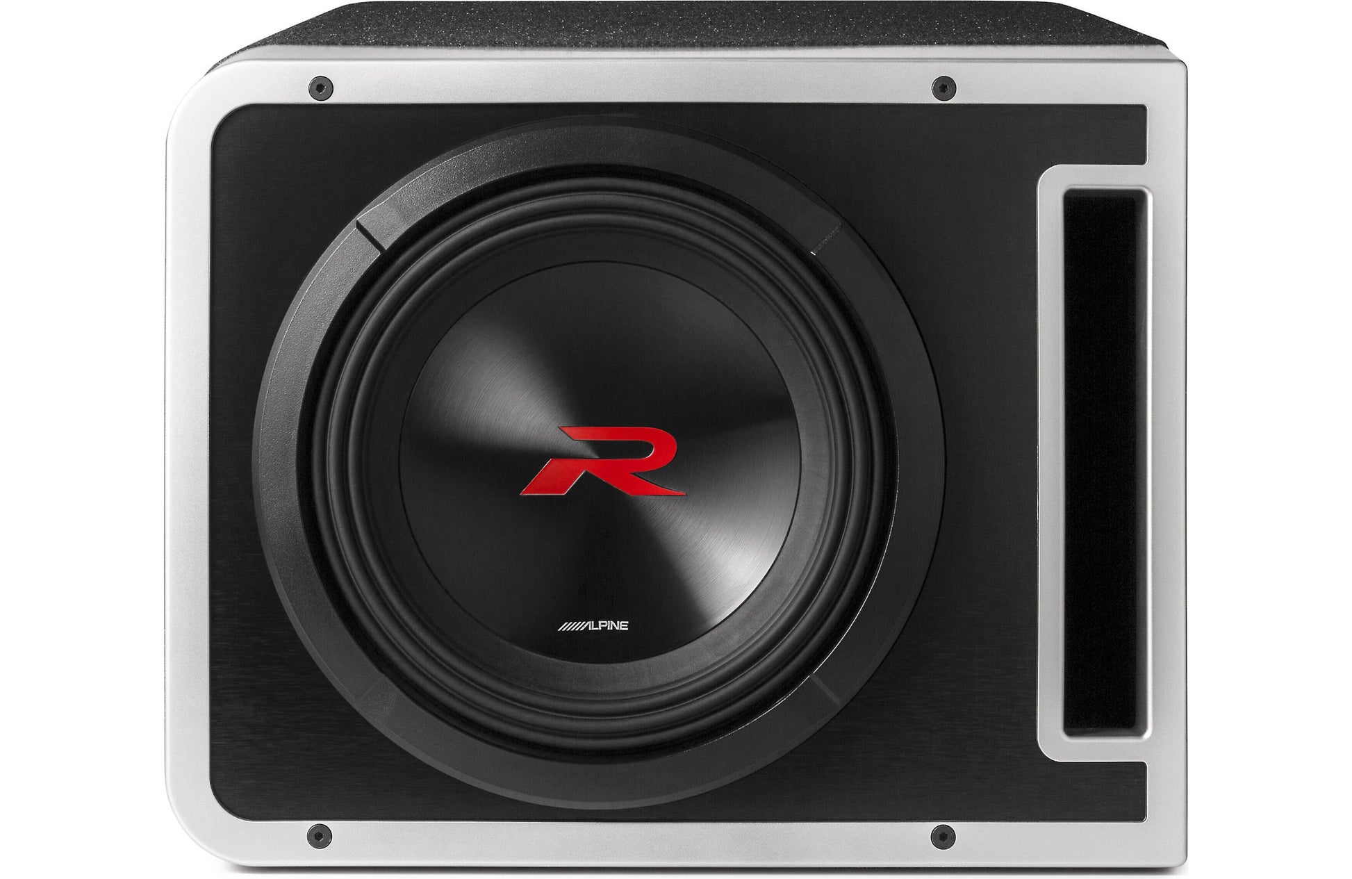 The R2-SB10V comes loaded with Alpine's updatedR2-W10D4 subwooferwired for 2-ohm impedance, for solid bass response at power levels up to 750 watts RMS. The ported enclosure is made of rugged 3/4" MDF with a stylish black carpet covering and is tuned to 36 Hz to maximize the lows.