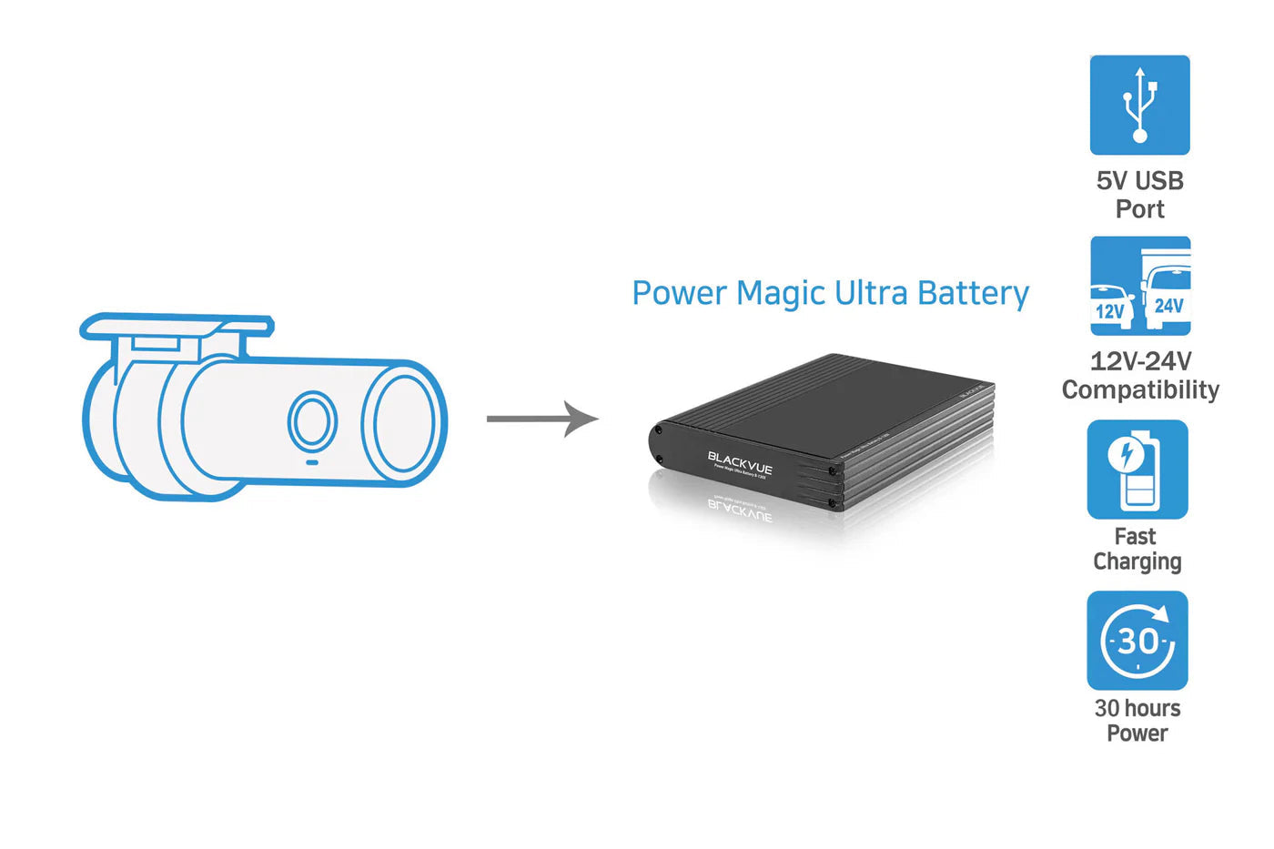 | Input Power | DC 12V-24V (DC Plug (Ø3.5 x Ø1.1)) to Wires (Black: GND / Yellow: B+ / Red: ACC) |