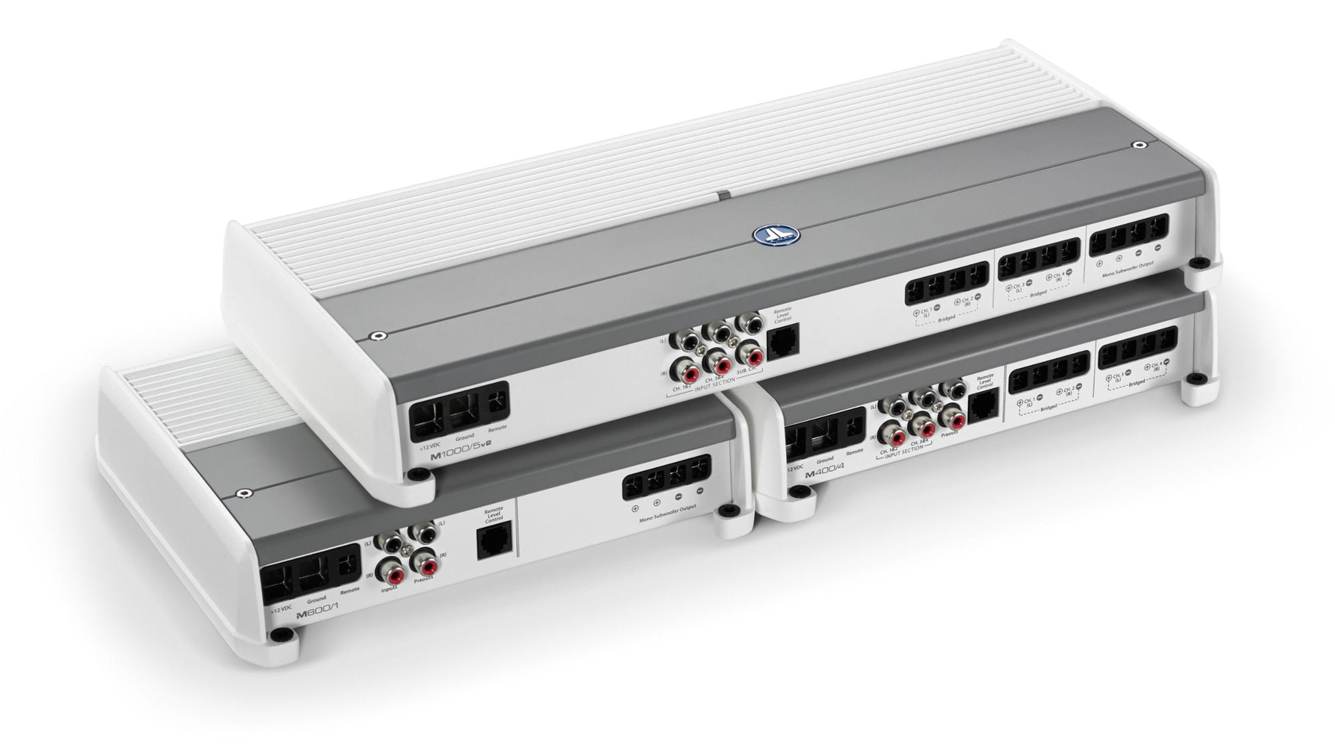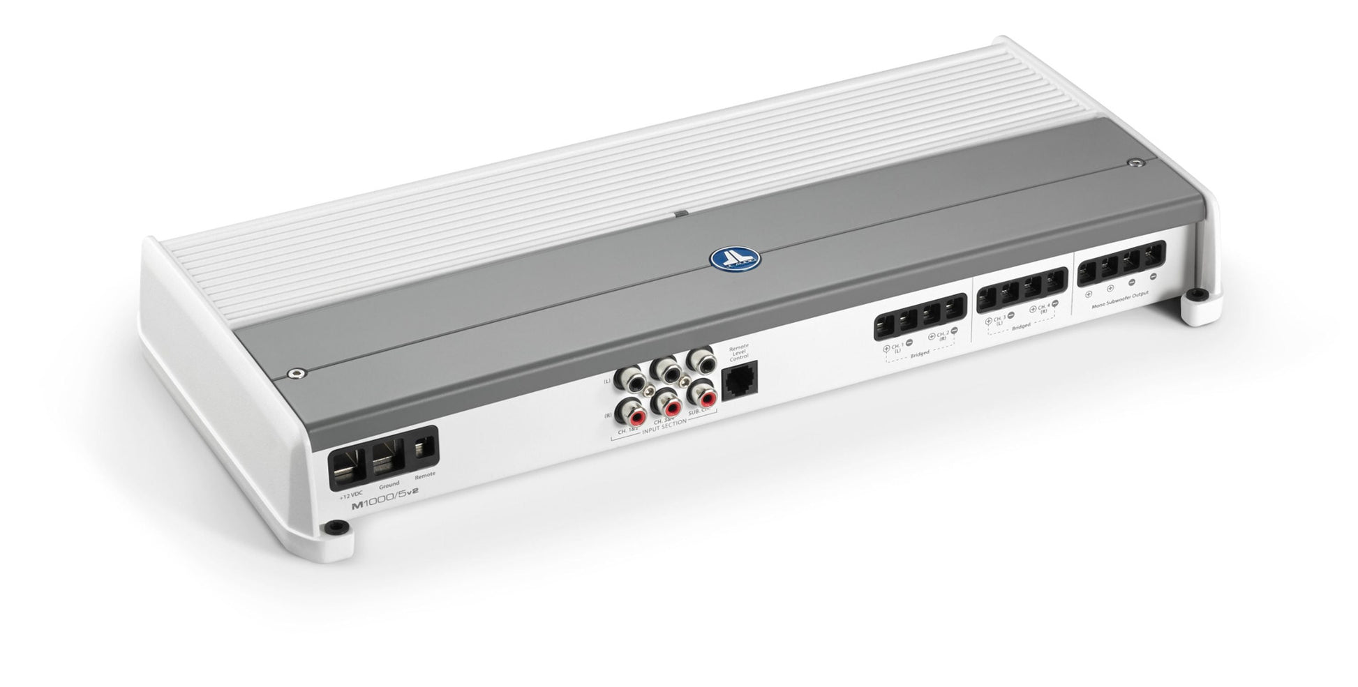 With the addition of an HD-RLC remote level control (sold separately), the amplifier's subwoofer output level or master volume for all channels can be directly controlled from the helm. The M1000/5v2 also features the v2 Spec feature set, which consists of automatic turn-on capability (via signal sensing or DC-offset sensing), and a dual-range differential-balanced input section able to handle a wide range of input voltage levels.