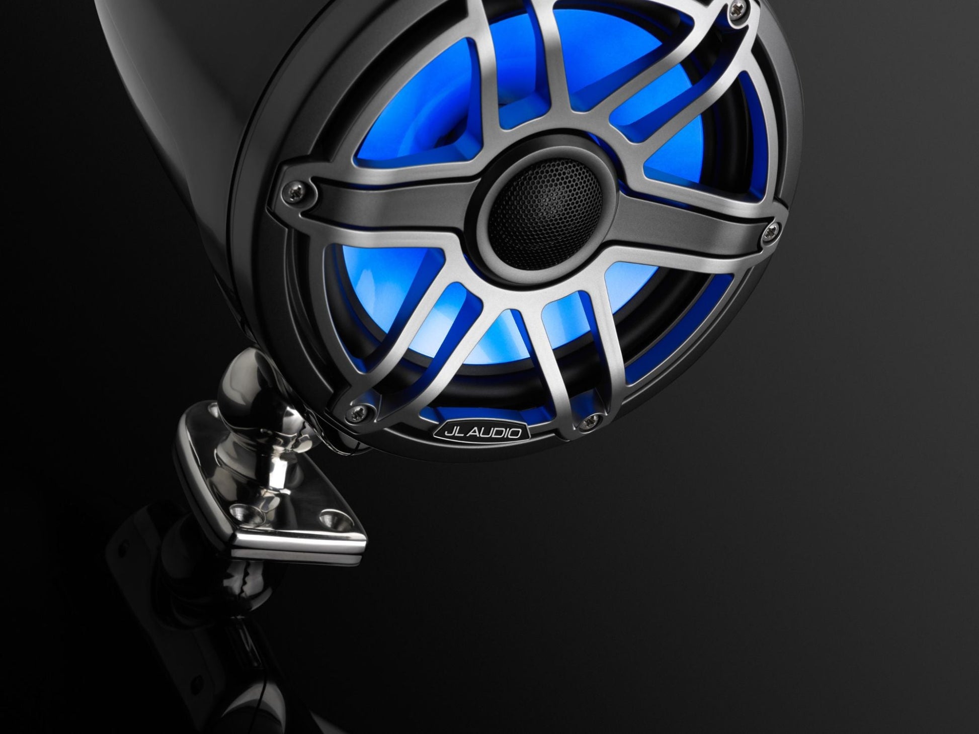 M6 7.7-inch Marine Enclosed Coaxial Speaker System with Transflective™ LED Lighting (100 W, 4 ohms) - Satin Black Enclosure, Gray Metallic Trim Ring, Titanium Sport Grille