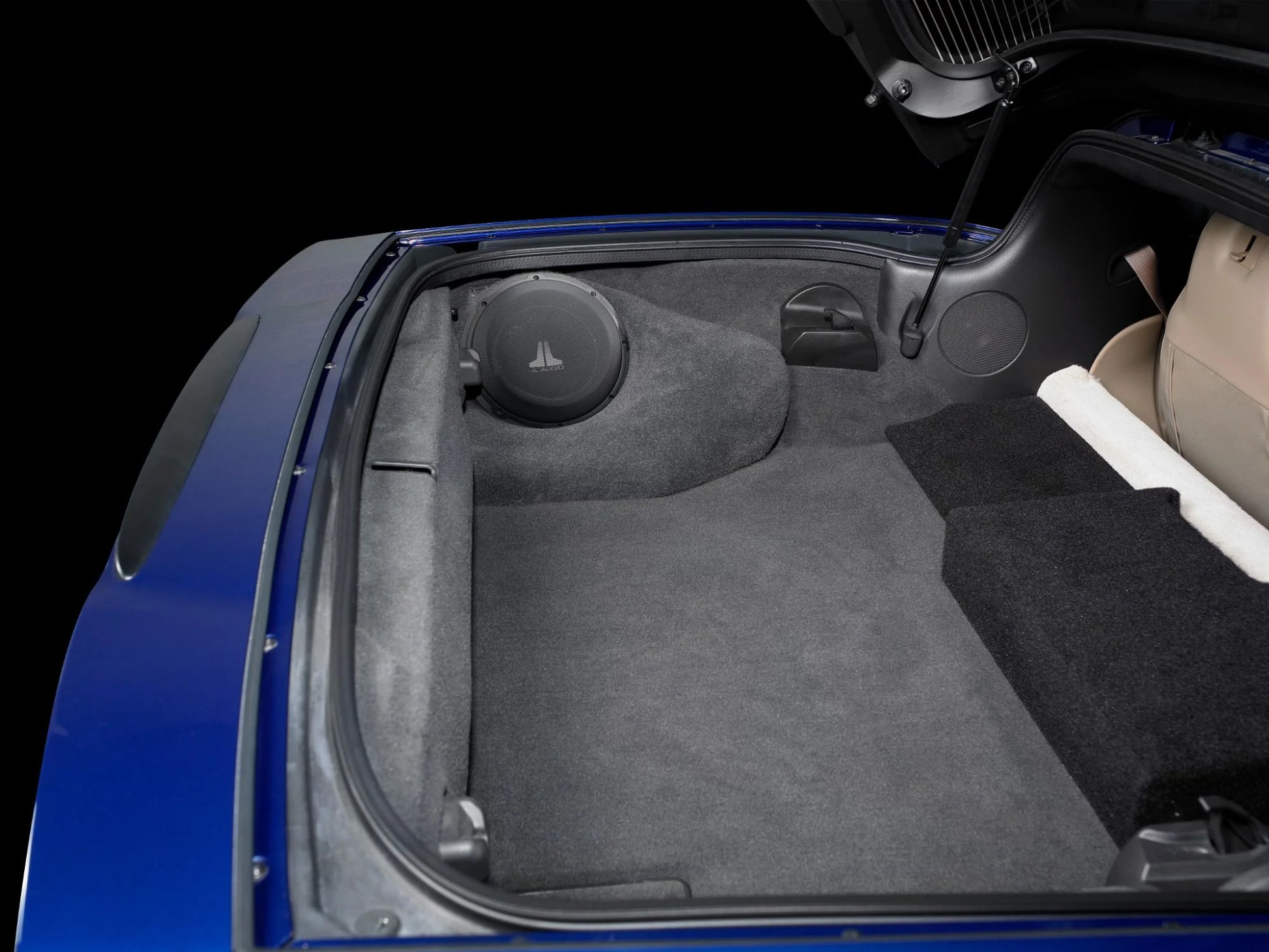 The sixth-generation Corvette is an amazing performance car, but it can definitely benefit from a major upgrade in the low-frequency department. This Stealthbox® tucks neatly into the rear corner of the hatch and uses the storage pocket space to gain volume without taking up much hatch space and without interfering with targa top stowage.