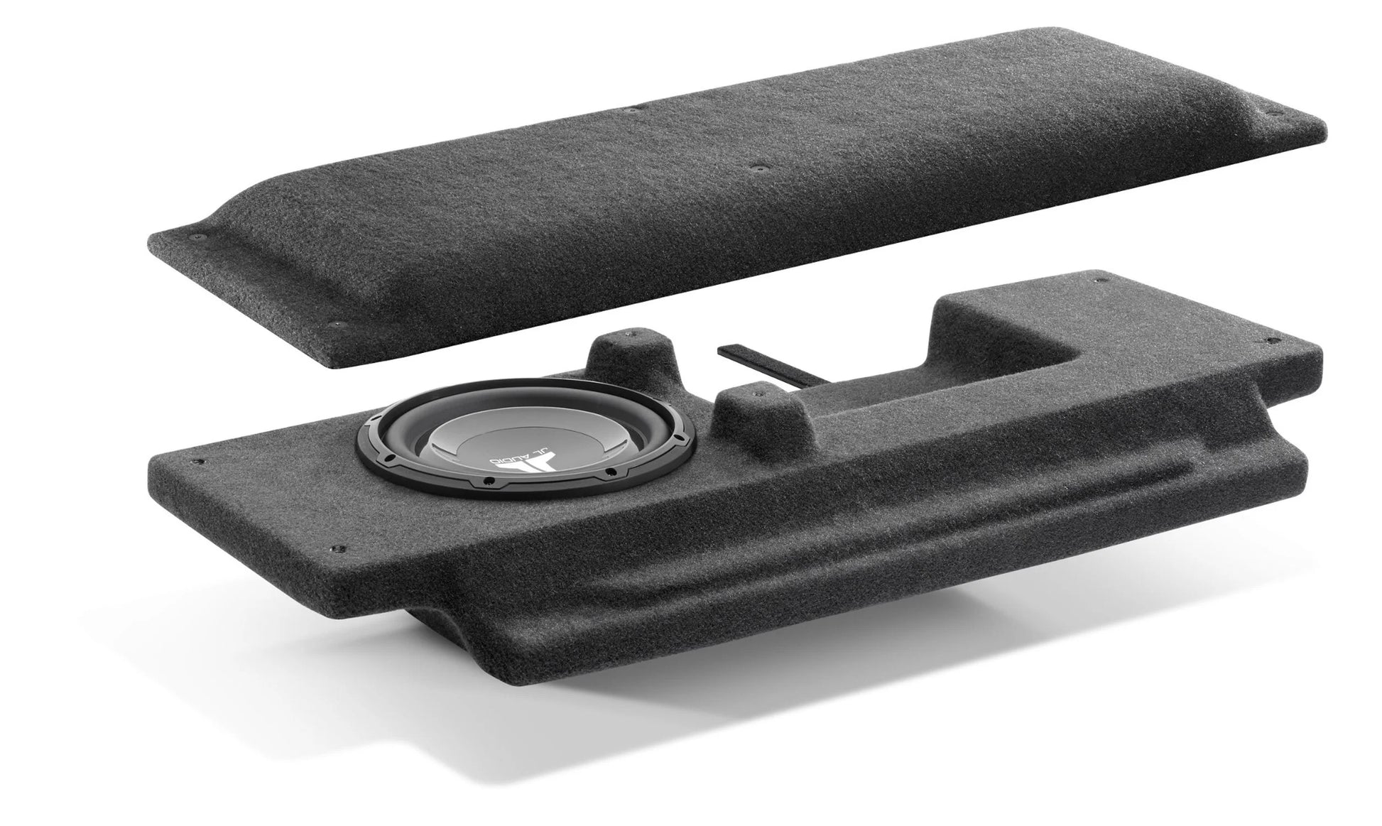 The Hard Data: Contains one 10W1v3-2 subwoofer in a sealed enclosure. 300 watt power handling. Wired for 2 ohm mono. Installs on floor of the rear cargo area. Floor of cargo area is raised approximately 5 inches with installation. Will not affect rear seat-folding functionality. Cannot be used without the factory tailgate in place.