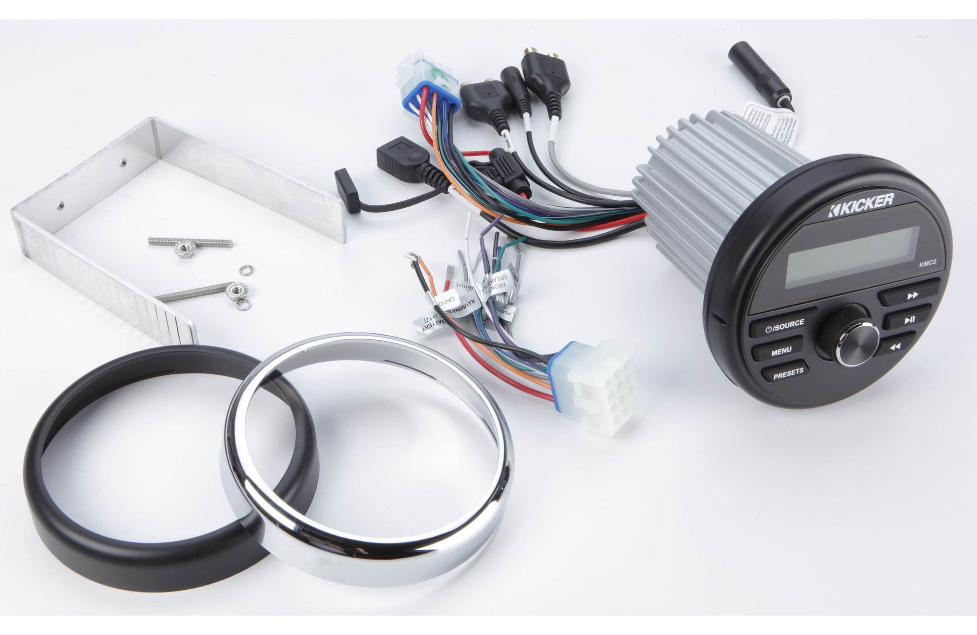 Equipped with an easily readable screen, rotary encoder and over 200 watts of total peak power into four channels, the KMC2 comes equipped with plenty of power. Add even more bump to your boat by adding amplifiers to the included RCA outputs.