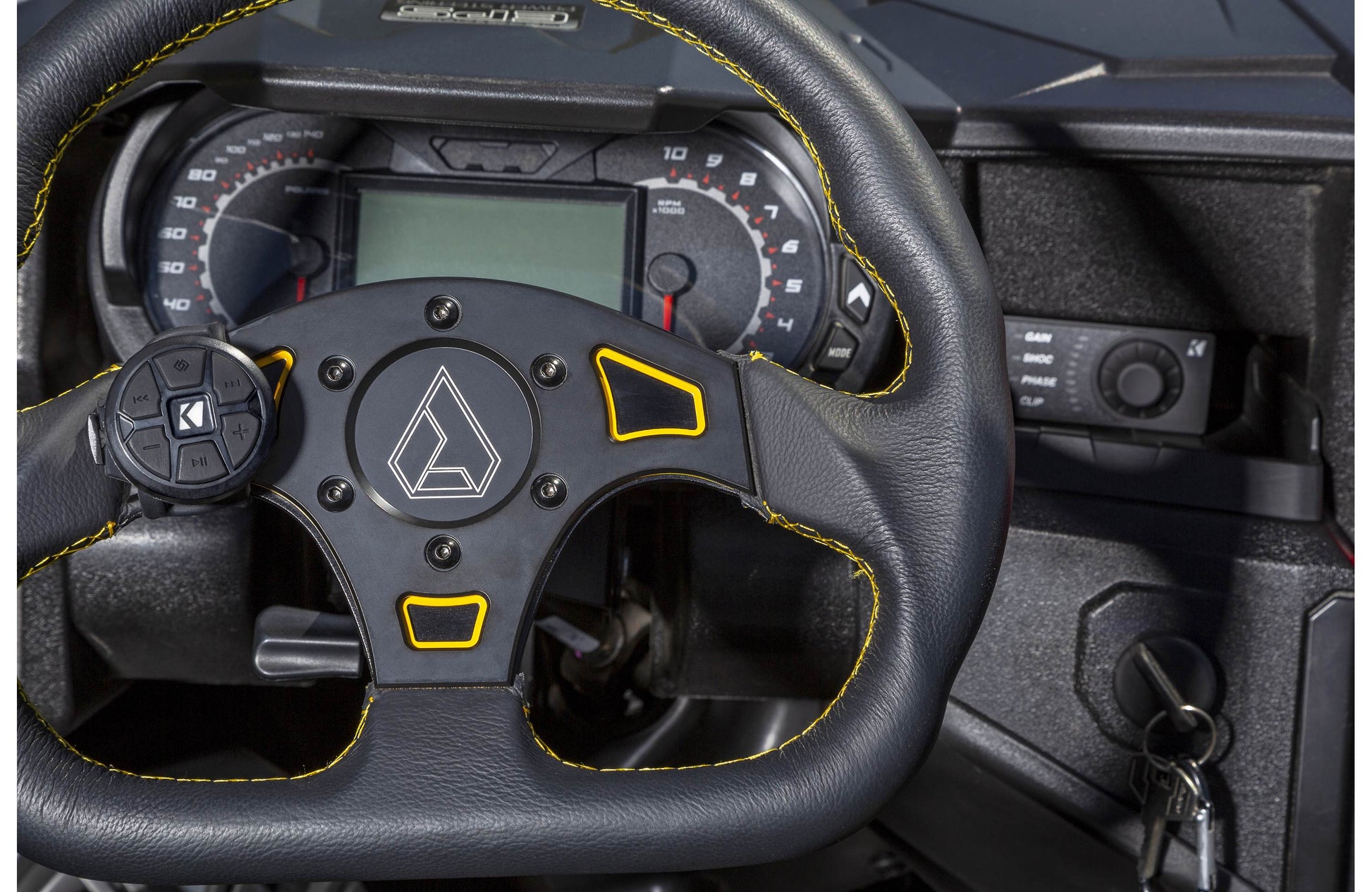 This rugged, water-resistant remote control is designed to work with Kicker's great-sounding 47KPB1and47KPB2Powerbars, so if something happens to the one that came with your soundbar, this is the perfect replacement. Attach this wireless remote to your steering wheel or another convenient location, and you'll have fingertip control of your tunes while you're out on the trail. Ideal for ATVs, golf carts, and small boats.