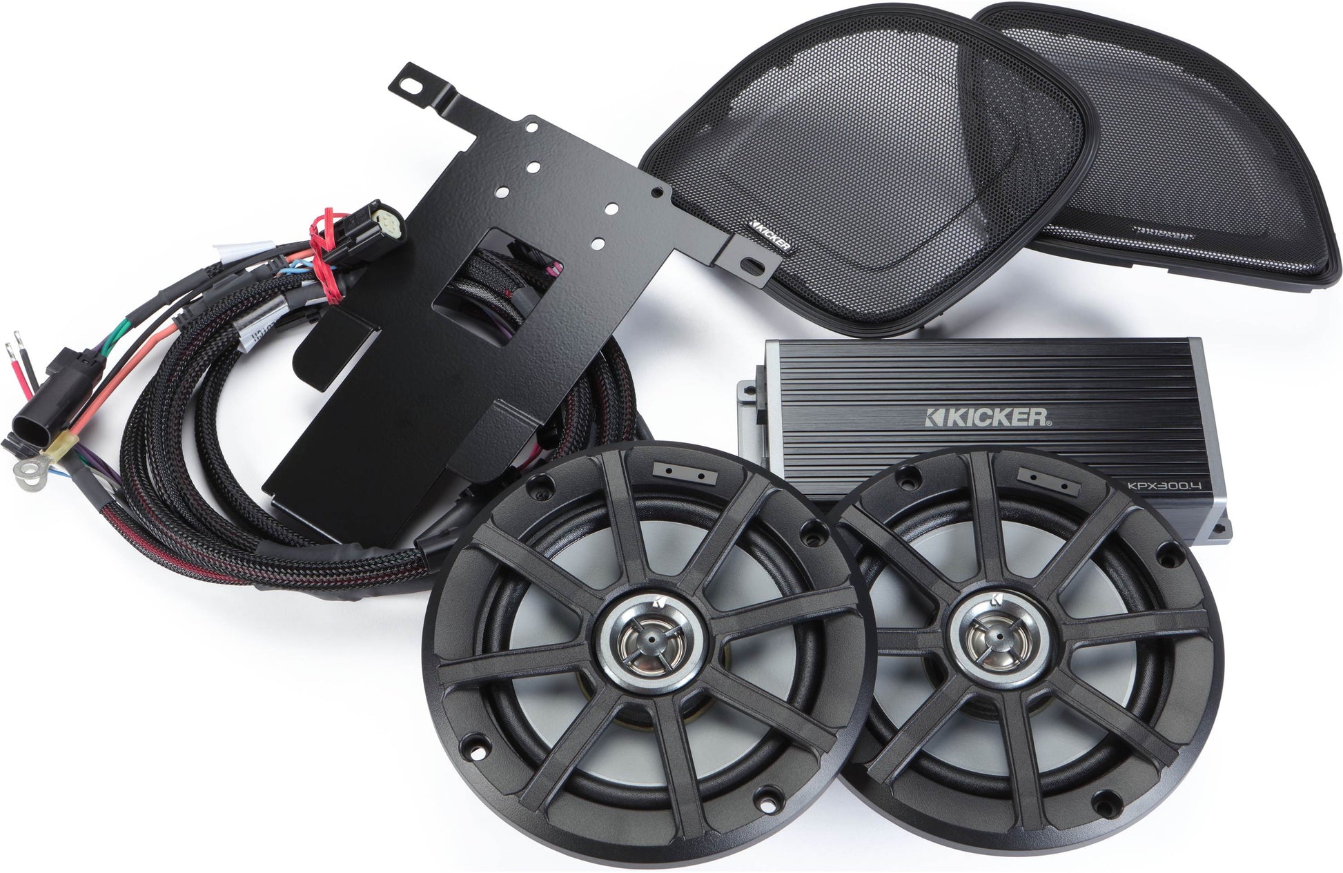Add great sound to your 2015 - 2023 Harley-Davidson Road Glide Shark-Nose fairing with this complete audio lid kit. It’s a complete audio solution loaded with waterproof KICKER 6-1/2-inch Coaxial Speakers (2 Ohm) and pre-measured, terminated speaker harnesses.