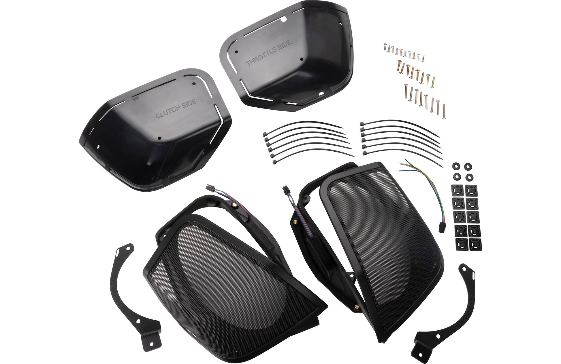 Cut-in motorcycle saddlebag lid kit (unloaded) with RGB LED wiring — fits select 2014-2023 Harley-Davidson models (speakers not included)